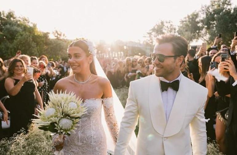Ünlü çift, Haziran ayında Çeşme’de dünyaevine girdi. Zeynep Mayruk, dantel ayrıntılı straplez model bir gelinlik tercih etmiş, Sarıtaş ise beyaz bir smokin giymişti.