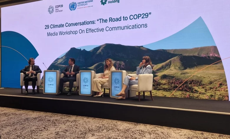 Medyanın, iklim değişikliğine dair farkındalığı geniş kitlelere yaymadaki önemini ve bu yönde geliştirilebilecek medya stratejilerini merkezine alan çalıştayda, COP29 organizasyonuna ve hedeflerine dair bilgilendirmeler yapıldı. COP29 Baş Müzakerecisi Yalchin Rafiyev, COP29 Operasyon Direktörü Narmin Jarchalova ve BM Mukim Koordinatörü Vladanka Andreeva, çalıştay kapsamındaki panelin katılımcıları arasında yer aldı.