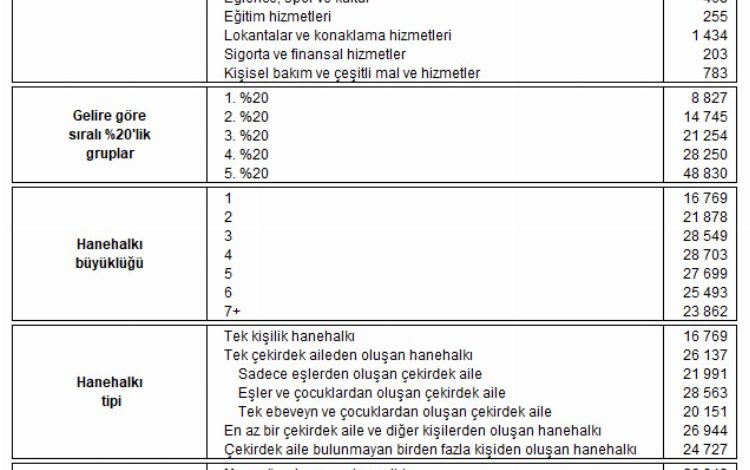 Hane halkı büyüklüğü ve kompozisyonu dikkate alınarak hesaplanan aylık ortalama tüketim harcaması hane halkı başına 24 bin 383 lira ve eşdeğer fert başına 12 bin 521 lira olarak tahmin edildi.