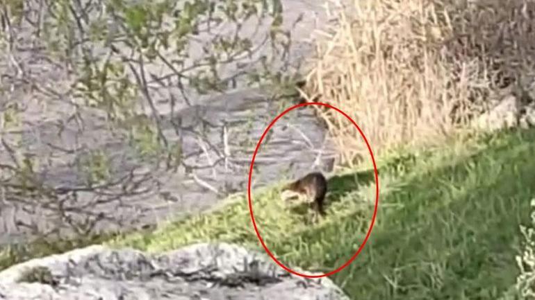Nesli tehlike altındaki su samuru Erzurum’un Aşkale ilçesinde ırmakta balık avlarken görüntülendi.