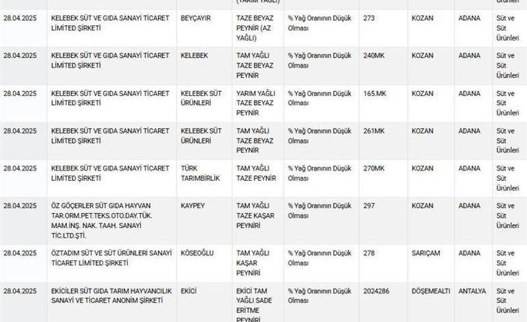 Bakanlığın listesinde 1 Ekim’den itibaren 138 tane yağ oranı düşük tespit edilen süt eseri var. Mesela yağ oranı azaltılmış tereyağı alanda yer alıyor. Mevzuat süt yağı belirli bir oranın altına düşmesin diyor. Buna uyulmayınca vatandaş aldatılıyor. Yayık tereyağı satılıyor. Bir bakıyorsunuz yasal hududun altında yağ oranı var. Mesela çörek otlu az yağlı beyaz peynir üretilmiş içerisinde bir çeşni var. O yağa güvenerek sütün yağını daha az koyuyorlar. Toplamda ortada bir yağ var lakin bir kısmı bitkisel bir kısmı süt yağı lakin süt yağı istenen ölçüde değil. İzmir’de kaymağı satışa sunmuşlar. Kaymaktaki yağ oranı azaltılmış. Kaymakta da bir kalite oranı vardır. İçerisindeki kuru unsur ve su ölçüsü. İçerisine ek edilen bitkisel yağlarla maliyet düşürülebilir.