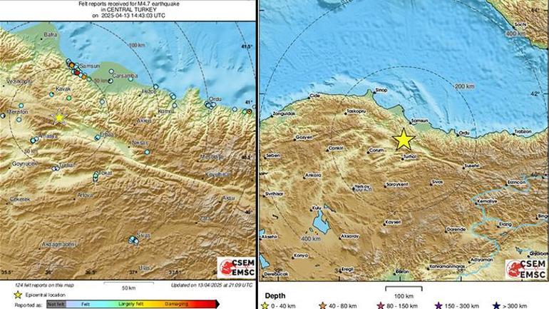 EMSC’ye göre Amasya’daki sarsıntıya ilişkin bilgiler
