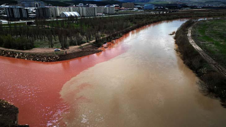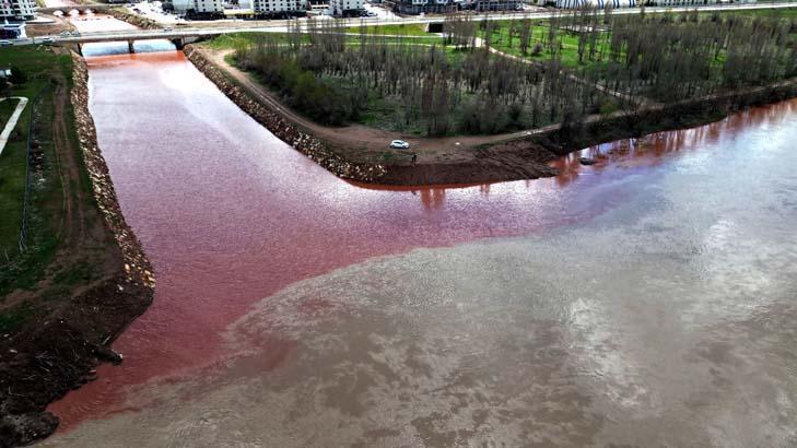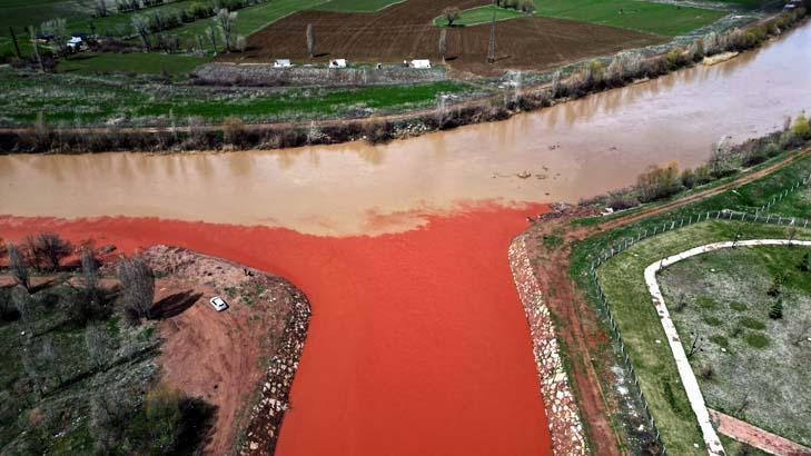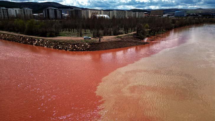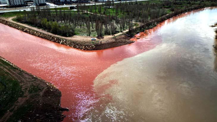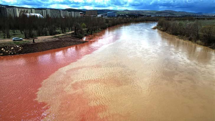 Yer: Sivas! Havadan görüntülendi, suyun kırmızıya dönüştü an bu türlü kaydedildi