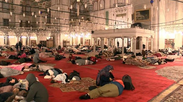 Fatih Camii’ne gelen onlarca kişi, cami içinde ve avlusunda uyudu. Kimi şahısların banklarda uyuduğu görülürken, kimi bireylerin ise cami bahçesine çadır kurduğu görüldü. Çok sayıda kişi ise cami içerisinde uyudu. Konutuna gitmek istemeyen birtakım vatandaşlar da geceyi Beyoğlu’ndaki spor salonlarında ve halı alanlarda geçirdi. (DHA)