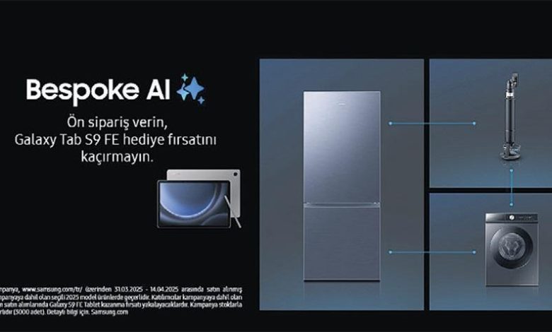 Samsung lansmana özel cazip bir kampanya ile son teknolojiyi daha fazla ömür alanına taşıyor. Kampanya kapsamında Bespoke AI Jet Ultra, seçili model alttan donduruculu Buzdolabı ve Bespoke AI Çamaşır Makinesi eserlerinden birini ön siparişle satın alanlara Galaxy Tab S9 FE tablet ikram ediliyor.